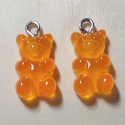 Breloques en forme de nounours en résine de différentes couleurs au choix. Elles sont vendues par lot de 2 breloques d'une seule couleur. Anneau en métal argenté.