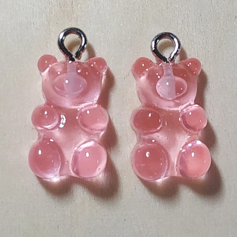 Breloques en forme de nounours en résine de différentes couleurs au choix. Elles sont vendues par lot de 2 breloques d'une seule couleur. Anneau en métal argenté.