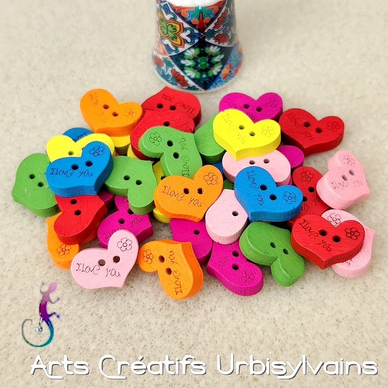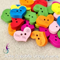 Boutons en bois en forme de cœur avec 2 trous, pour couture, loisirs créatifs et scrapbooking.