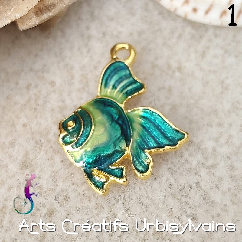 Belle breloque représentant un poisson en émail cloisonné et métal doré pour fabrication de bracelet ou de collier. 5 couleurs au choix.